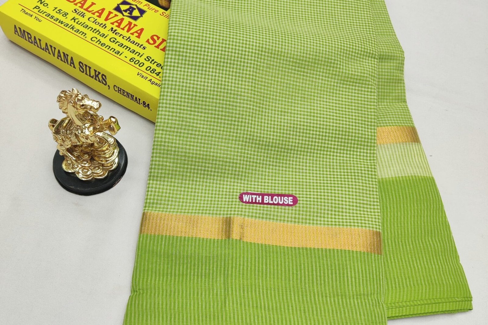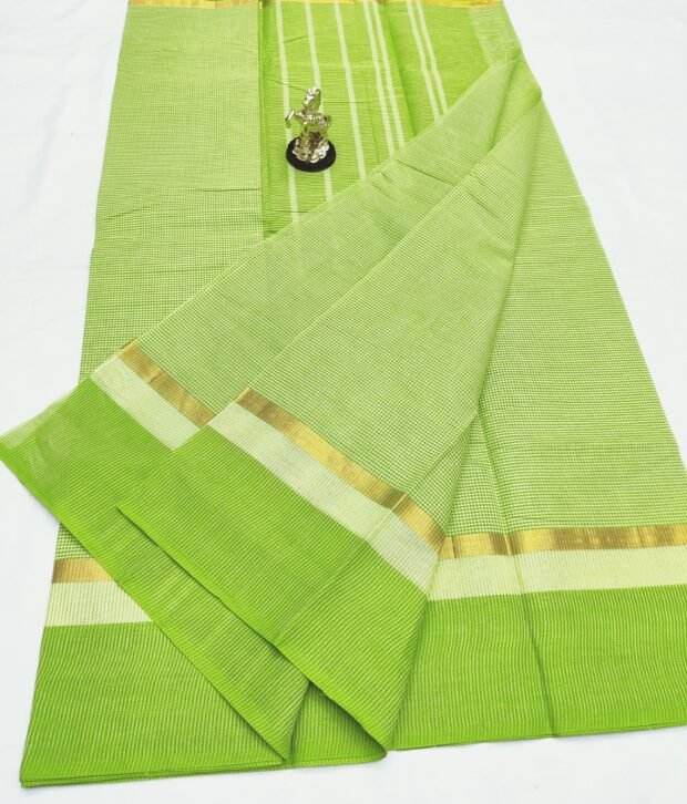 Discover the elegance of Andhra Pradesh’s traditional handwoven cotton sarees, featuring a subtle mini checks pattern that adds a touch of sophistication to your everyday look. Each saree is crafted with care, offering a small jari border for a hint of shine and a running blouse piece that matches seamlessly. Lightweight and breathable, these sarees are perfect for daily wear, combining comfort with timeless style.