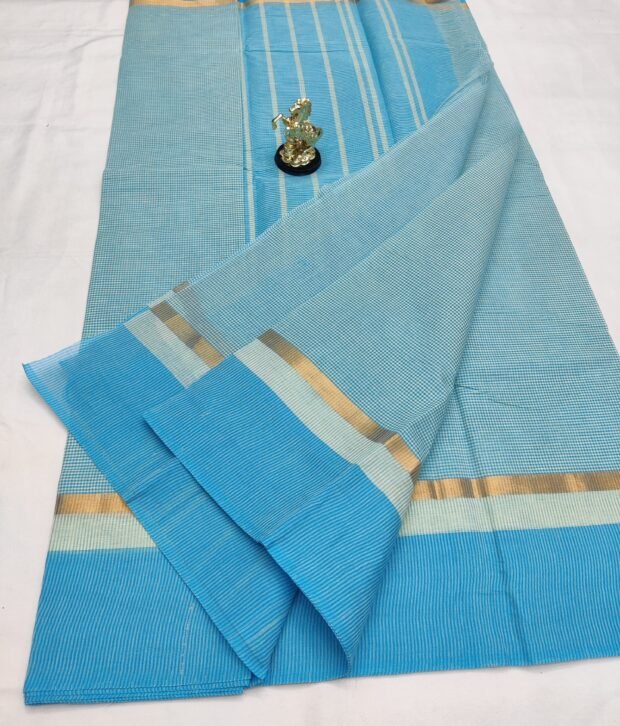 Discover the elegance of Andhra Pradesh’s traditional handwoven cotton sarees, featuring a subtle mini checks pattern that adds a touch of sophistication to your everyday look. Each saree is crafted with care, offering a small jari border for a hint of shine and a running blouse piece that matches seamlessly. Lightweight and breathable, these sarees are perfect for daily wear, combining comfort with timeless style.