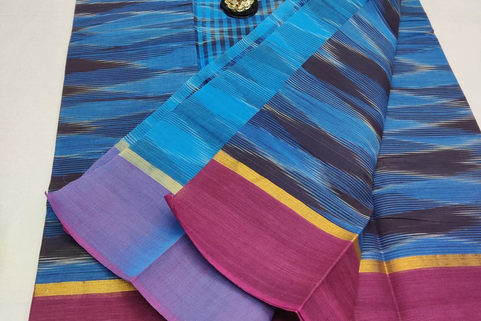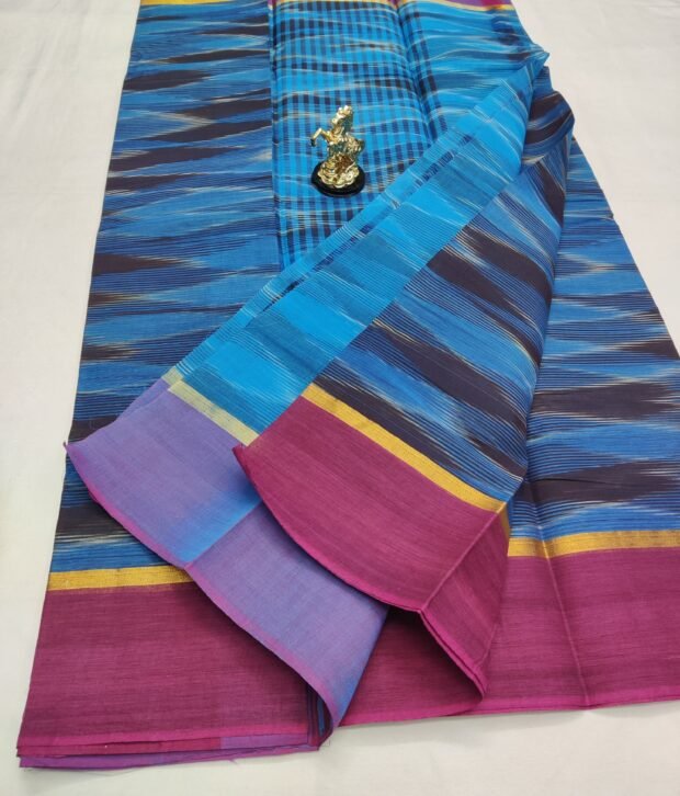 Embrace the authentic beauty of Andhra Pradesh with this traditional handwoven cotton saree, featuring a unique Zig Zag Kattari design print that exudes cultural charm. Woven by skilled artisans, this saree comes with a contrasting blouse piece and a delicate jari border, adding a subtle touch of elegance. Lightweight and comfortable, it’s ideal for daily wear, offering breathability and effortless drape.