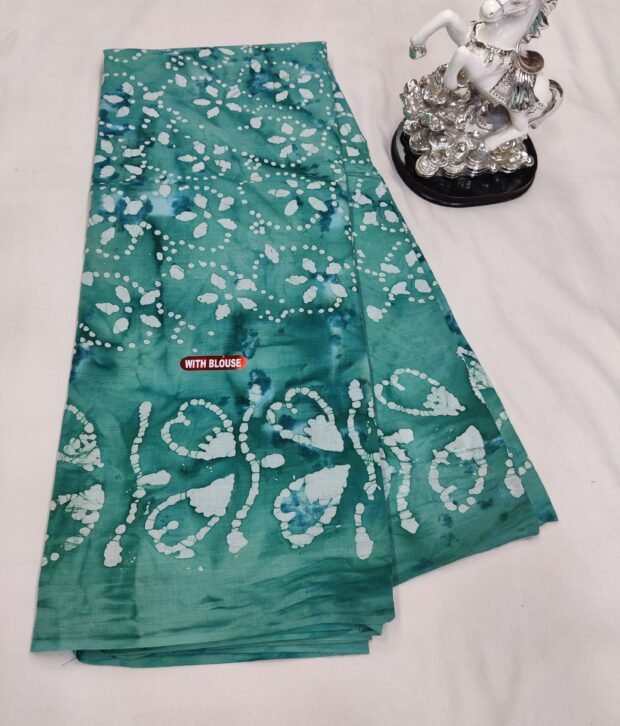 Discover elegance redefined with our stunning sarees, featuring an enchanting pluse design paired with vibrant color combinations that make a bold statement. Meticulously crafted from pure cotton batik, these sarees offer a perfect mix of comfort and sophistication.
