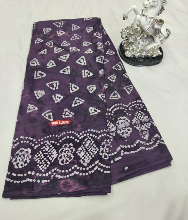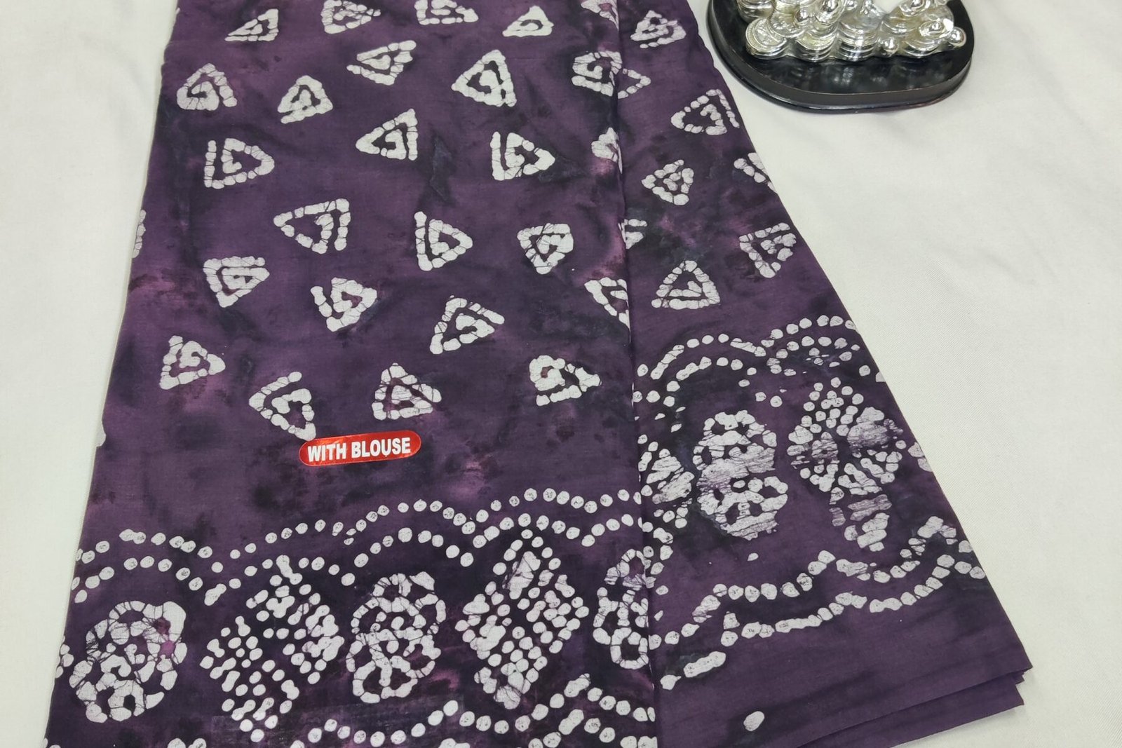Discover elegance redefined with our stunning sarees, featuring an enchanting pluse design paired with vibrant color combinations that make a bold statement. Meticulously crafted from pure cotton batik, these sarees offer a perfect mix of comfort and sophistication.