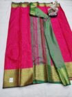 Eaturing a beautiful pluse design, these sarees showcase inspiring color combinations that enhance their charm. The sarees are finished with an intricately designed jari border and a rich pallo, adding sophistication and grace. Each saree comes with a contrasting blouse piece, offering a striking visual appeal that perfectly complements the saree’s elegant design.