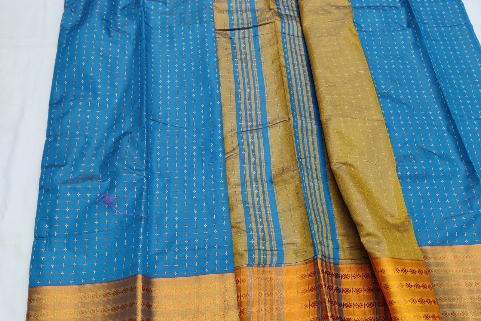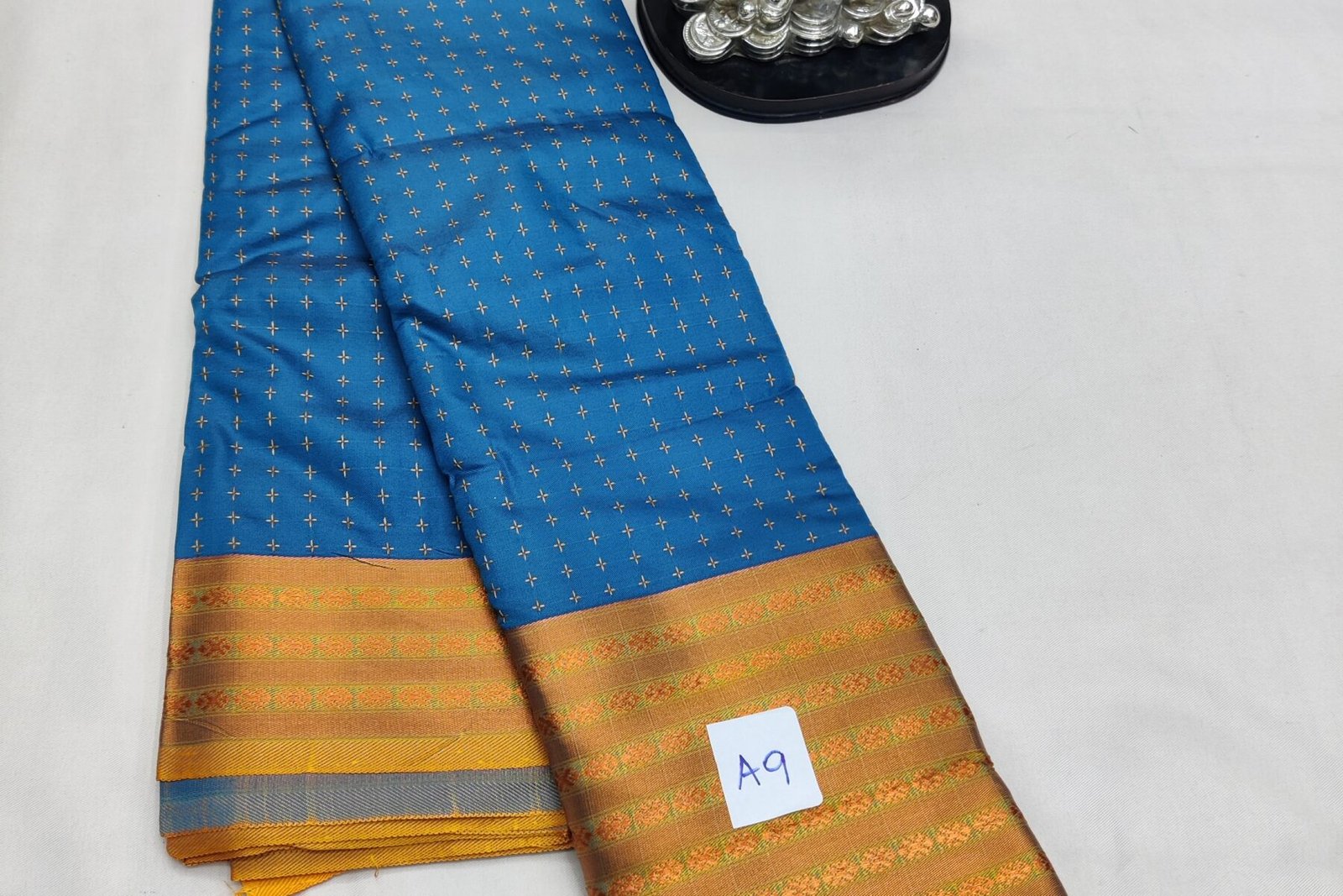 Colour: GOLDEN YELLOW BORDER – BODY PEACOCK BLUE