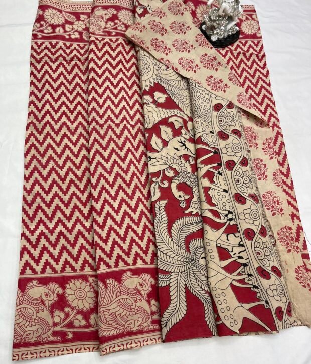 Ideal for festive events, celebrations, or even daily wear, this Kalamkari saree is a must-have for those who appreciate elegance with a touch of cultural tradition.